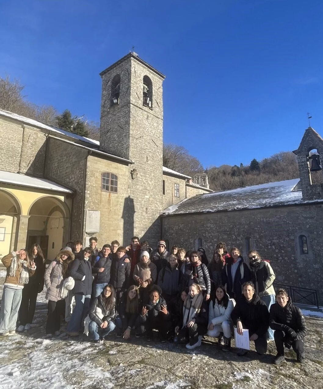Nie zabrakło też czasu na poznawanie historii, sztuki i natury Toskanii. Uczniowie odwiedzili m.in. Florencję, Arezzo, a także Park Narodowy Casentino i sanktuarium La Verna, miejsce szczególnie ważne dla duchowej i kulturowej tożsamości regionu. Poznali także historię średniowiecznego Poppi, a wspólny spacer po zamku oraz udział w lokalnych wydarzeniach, takich jak iluminacja świąteczna w Bibbienie, pozwoliły poczuć prawdziwy klimat włoskiej gościnności.